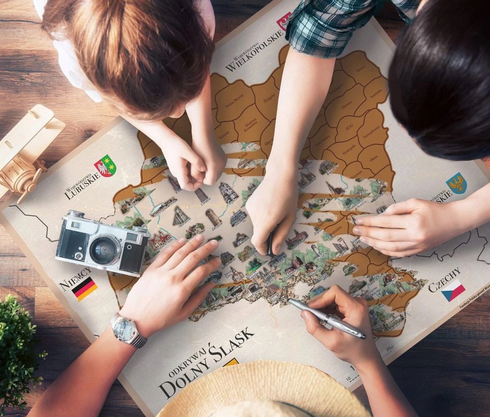 Скретч-карта «Відкрийте для себе Нижню Сілезію», яка представляє найкрасивіші та найцікавіші пам'ятки Нижньосілезького воєводства.
