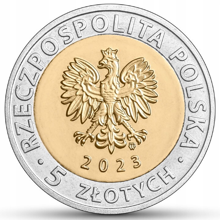 На аверсі півколом розміщено напис «RZECZPOSPOLITA POLSKA» та 5 ZŁ.Унизу зображення орла, встановленого гербом Республіки Польща, дата випуск предмета.