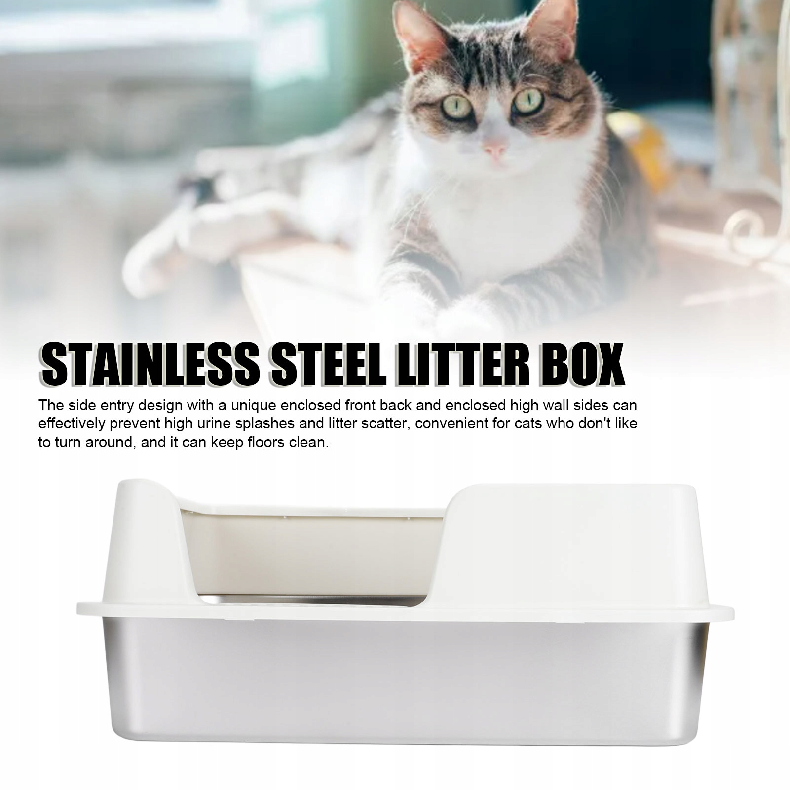 Коробка для сміття з нержавіючої сталі Високі сторони, що запобігають легкому -Кліну закритому коробці для сміття для малих та середніх котів