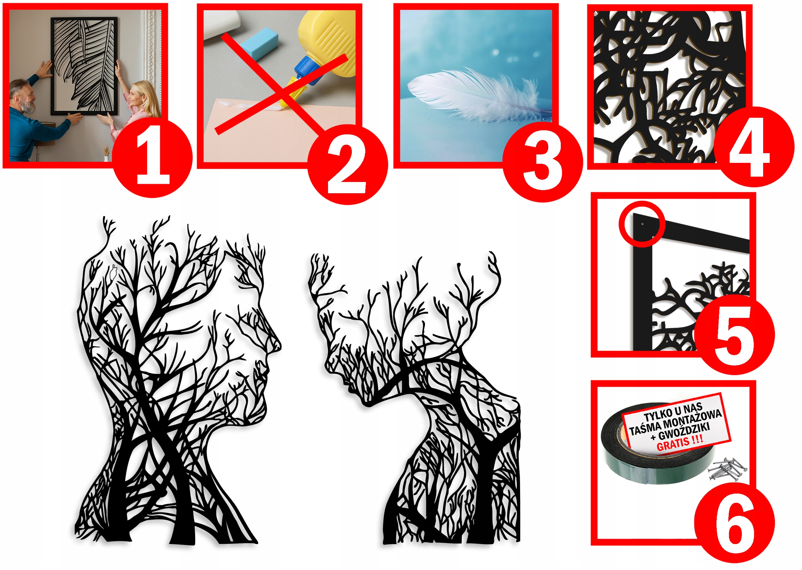 1. За допомогою самостійних кріпильних стрічок - просто відшаровуйте захисний шар стрічки і приклейте зображення до стіни