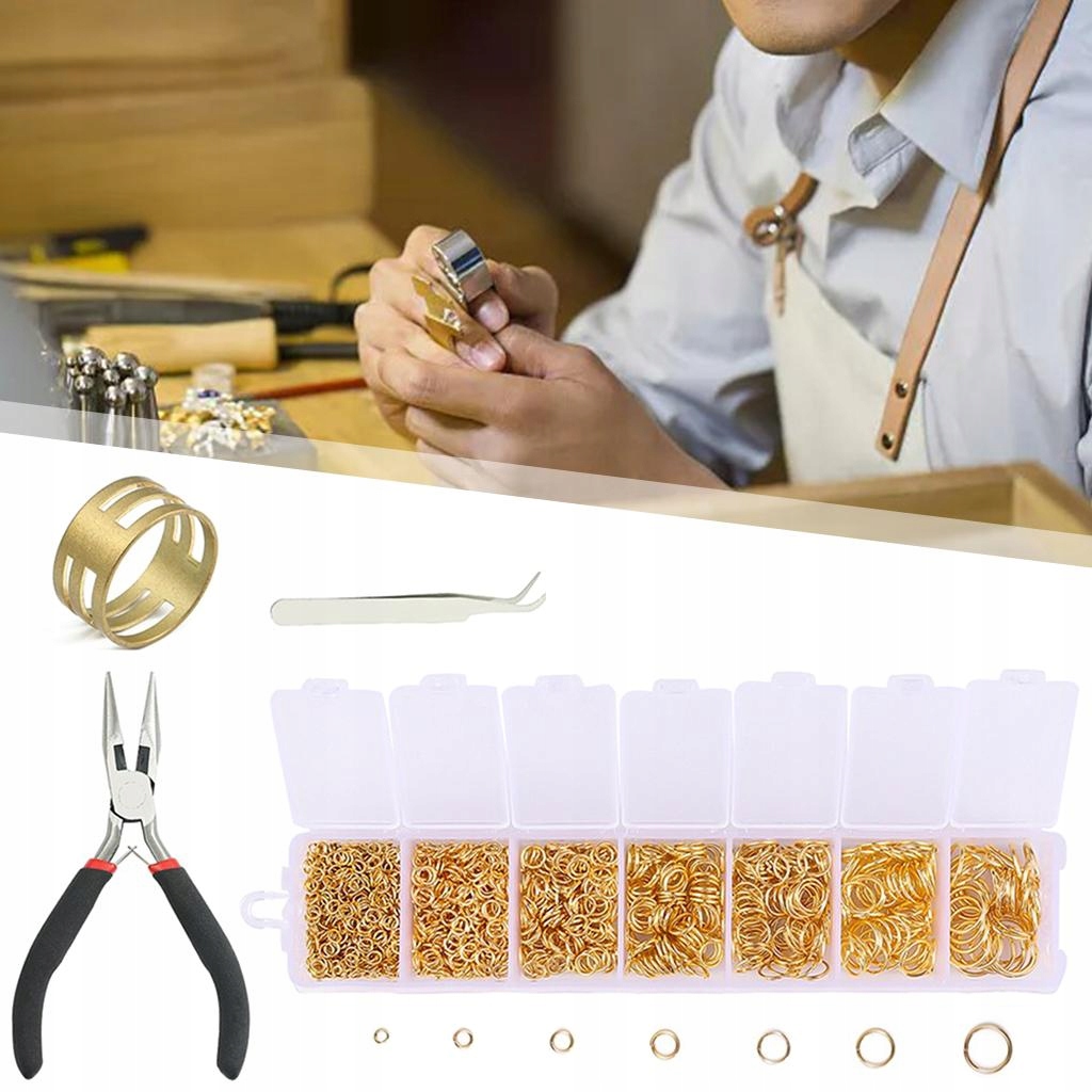 : 0,5 х 3 мм (400 штук), 0,7 х 4 мм (200 штук), 0,7 х 5 мм (200 штук), 0,8 х 6 мм (150 штук), 0,8 х 6 мм (150 штук), 0,8 х 7 мм (100 штук), 0,8 х 8 мм (100 штук), 0,9 х 10 мм (20 штук); Кожен набір включає 1 інструмент стрибків, 1 вигнуті пінцет та 1 плоскогубці з різкими кінчиками. Задовольнити різні потреби в галузі створення ювелірних виробів.