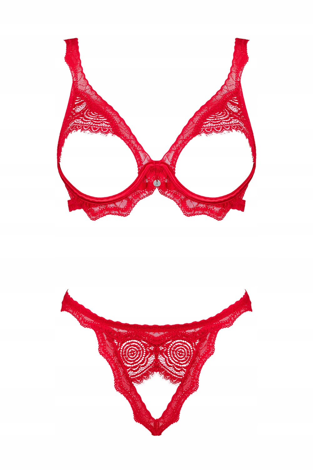 Відкритий бюстгальтер Obsessive Bergamore червоний, стрінги, M/L