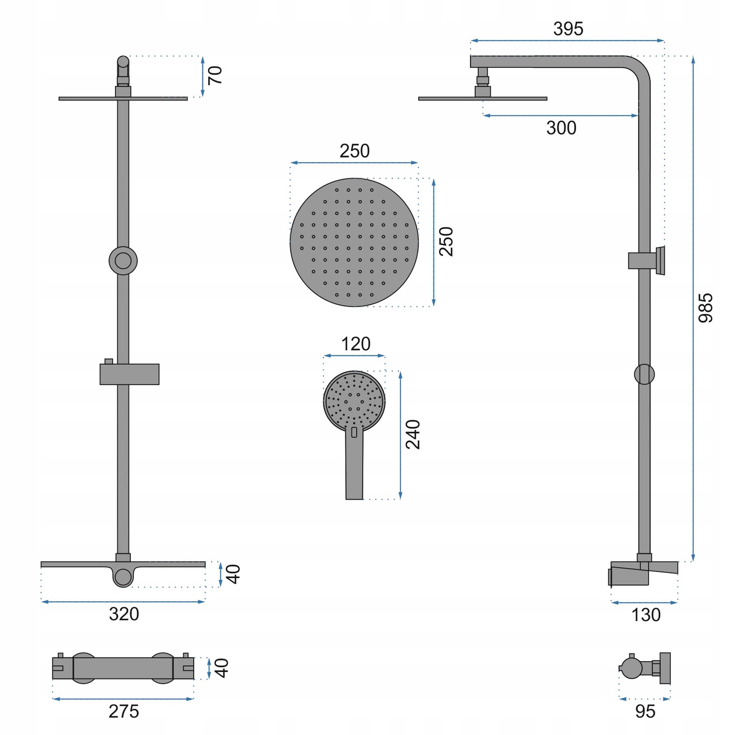 - Розмір душу: 25 x 25 см