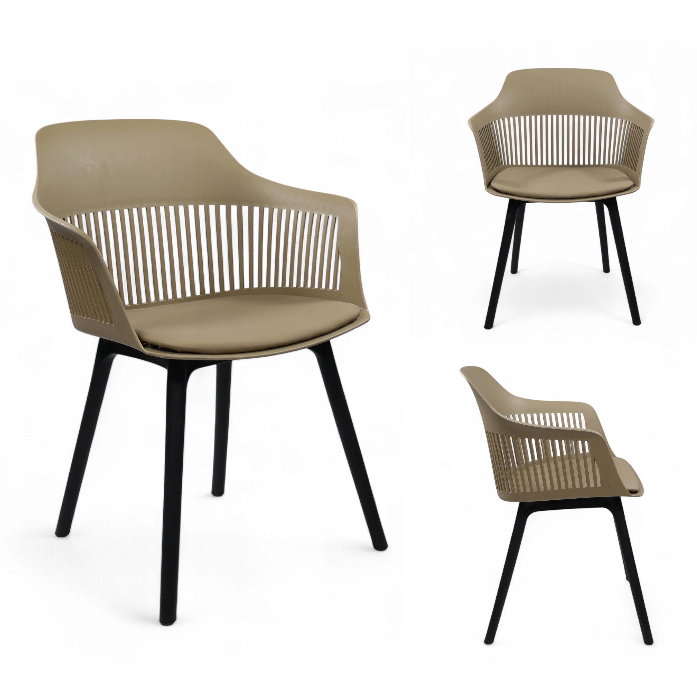 стілець оснащений приталеною подушкою на сидінні, яка забезпечує високий комфорт у використанні - ідеально підходить для щоденних страв, роботи за столом або довгими розмовами за столом. Ергономічні спинки з вставками з відкритими роботами забезпечують зручну підтримку спини та легку, повітряну форму.