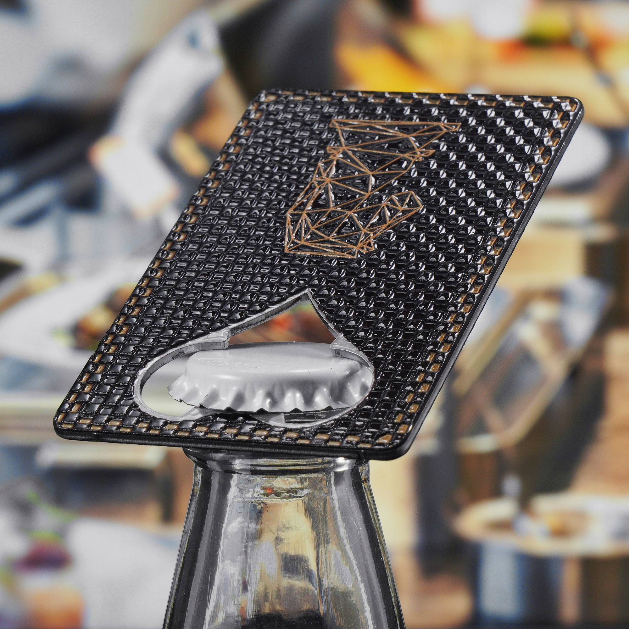 Витончений предмет, який ви дістаєте з кишені, як туз у рукаві? Практичний аксесуар, який врятує багато вечірок? Класний маленький предмет, який виділить вас з натовпу? Збожеволійте та оберіть крутий гаджет – відкривачку у формі картки, перед якою не встоїть жодна кришечка чи кришка від пляшки!
