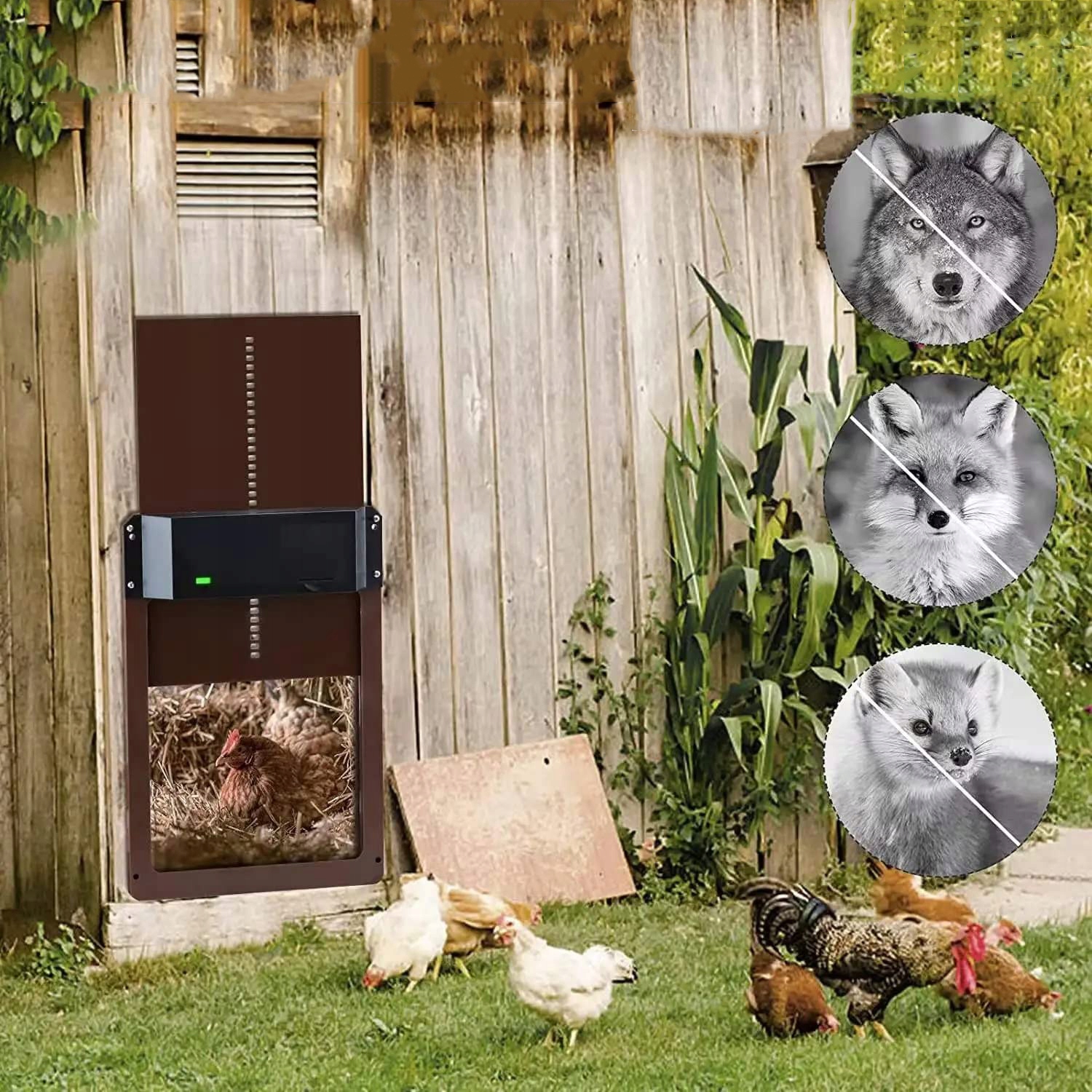[Захистіть своїх курей] Відкривач дверей для курей для безпечного розведення курей. Відкривання дверей курятника надійно зачиняється та забезпечує достатній захист від нічних ворогів (лисиця, норка тощо).