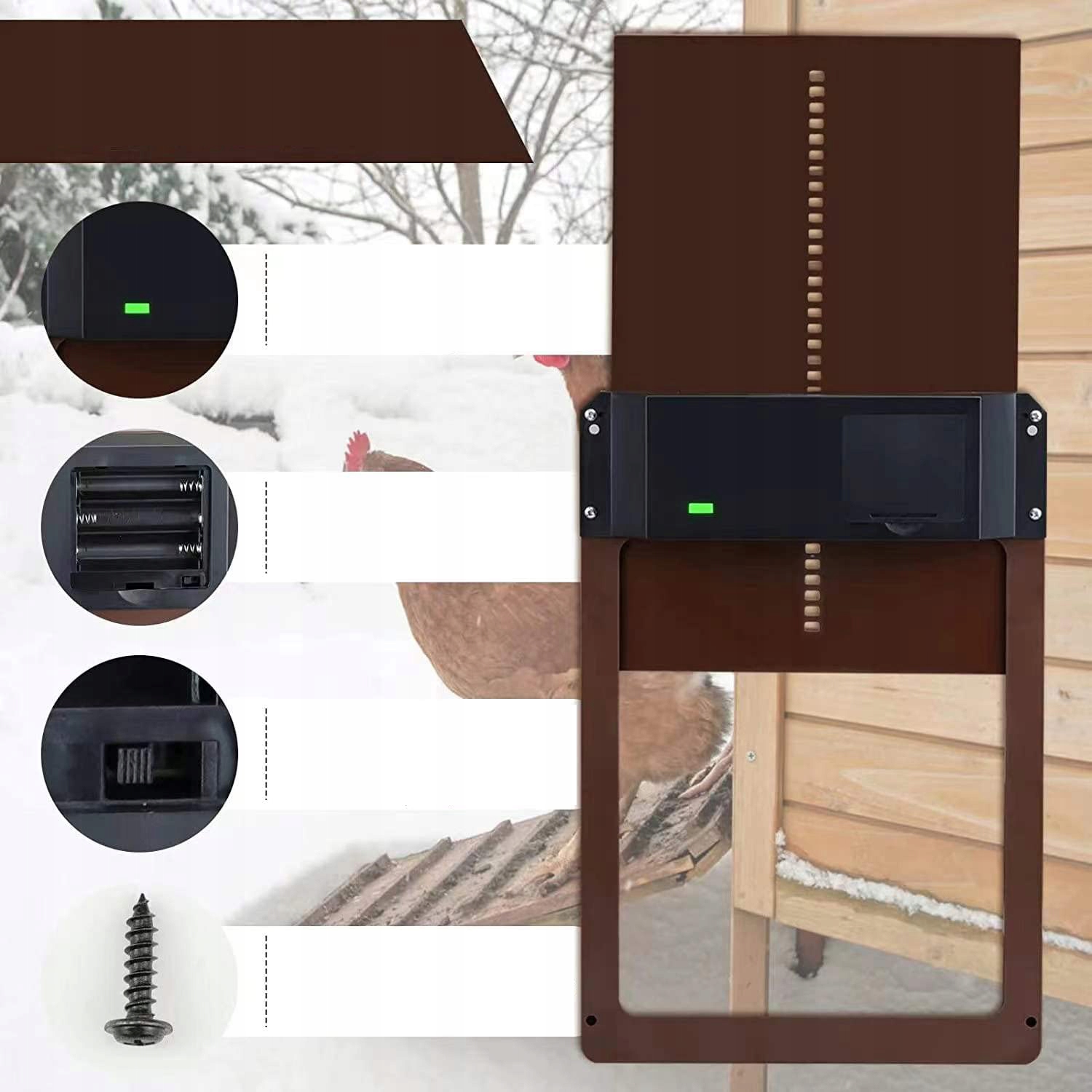 1. Ці автоматичні двері для курника дуже зручні у використанні. Він оснащений системою датчиків освітлення, яка автоматично відкривається в темряві і закривається в темряві. Це може заощадити вам багато часу.