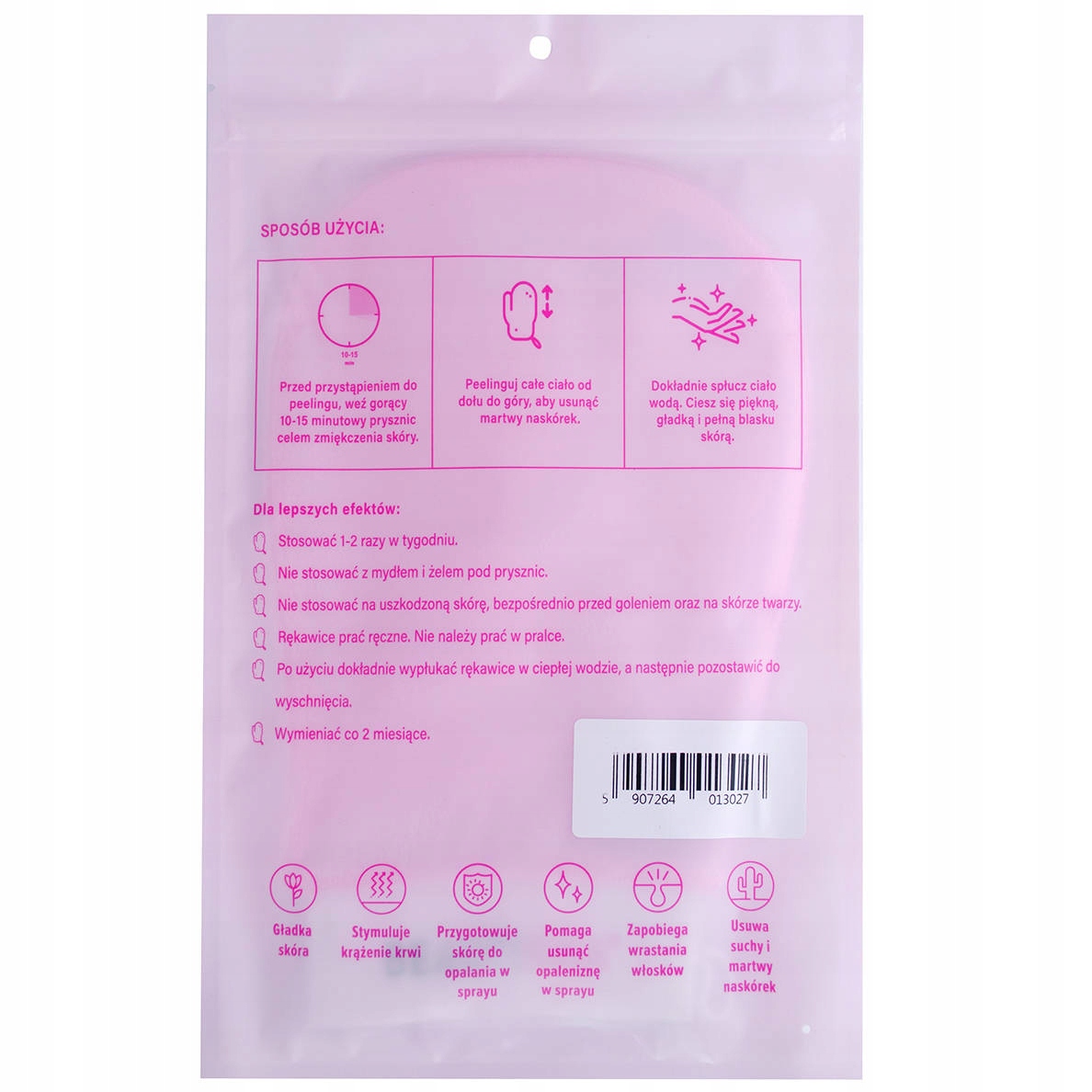 Рукавичка виготовлена з 100% віскози, тому не викликає алергії. Рукавичка виготовлена з віскози і має грубу структуру, тому швидко відлущує шкіру. Для кращих результатів використовуйте рукавички 1-2 рази на тиждень. Рукавичку для пілінгу можна використовувати для всього тіла. Особливо пам’ятайте про такі місця, як стегна, сідниці, руки та ноги.