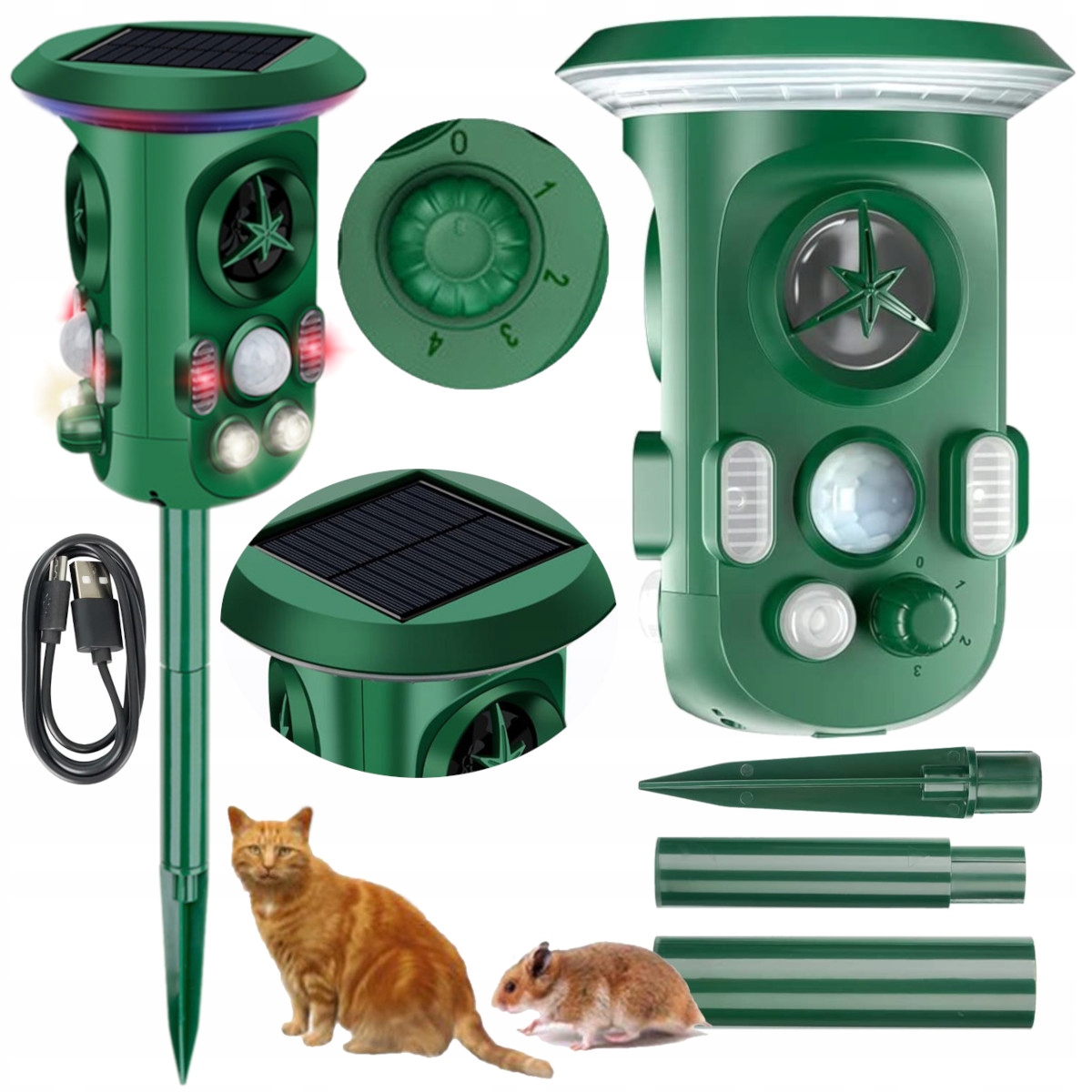 Відлякувач тварин із новітньою фотоелектричною технологією. Він використовує сонячну енергію для зарядки вбудованого акумулятора. Завдяки цьому відлякувач тварин може працювати без будь-якого обслуговування та автоматично без перерв.
