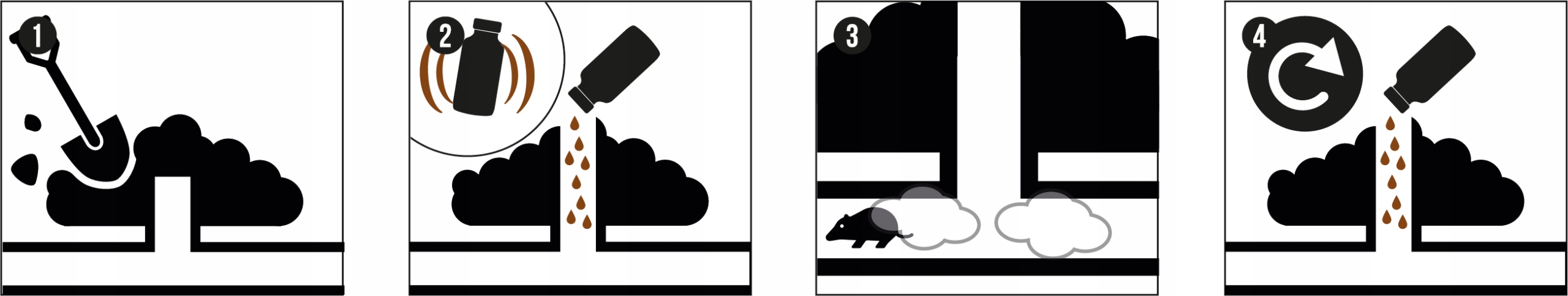 Перед лікуванням потрібно знайти всі активні бугри. Потім підготуйте їх до обробки, відгрібаючи ґрунт до рівня землі, стежачи за тим, щоб не засипати входи в коридори. Налийте по 30 мл рідини в кожну відкриту яму в підземному коридорі і злегка засипте землею.