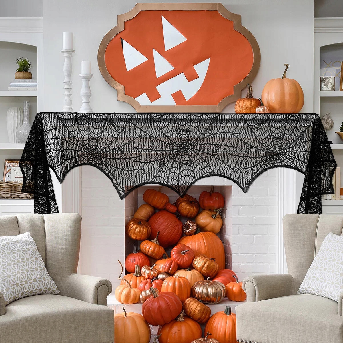 ✅Покажіть на камінній дошці, камінній дошці, будинку, міжкімнатних дверях, вікні, дверях, столі, обідньому столі, котеджі, буфеті, шалі або як фон, додайте трохи веселощів на Хелловін вам, вашій родині та друзям. Створіть дивовижну атмосферу для вечірки на Хелловін за допомогою чорних мереживних аксесуарів.