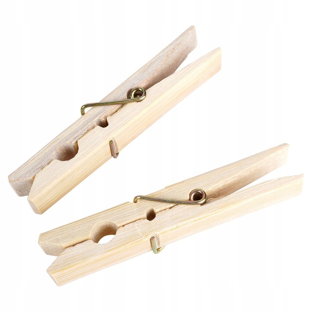 Набір із 48 шматочків затискачів для білизни. Розміри пряжки - 7 х 1 см. Виготовлені з бамбукової деревини надзвичайно міцні. Естетичний зовнішній вигляд та сильний трюм роблять нас із задоволенням користуватися ними. З їх допомогою ми прикріпимо миття як вдома, так і в саду, на балконі. Зроблено відповідно до європейських стандартів. Beige