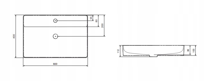 rima 2.0 60 см з тонким краєм - це керамічна мийка, зроблена з увагою до кожної деталі. У ньому є отвір для раковини, великий макет.