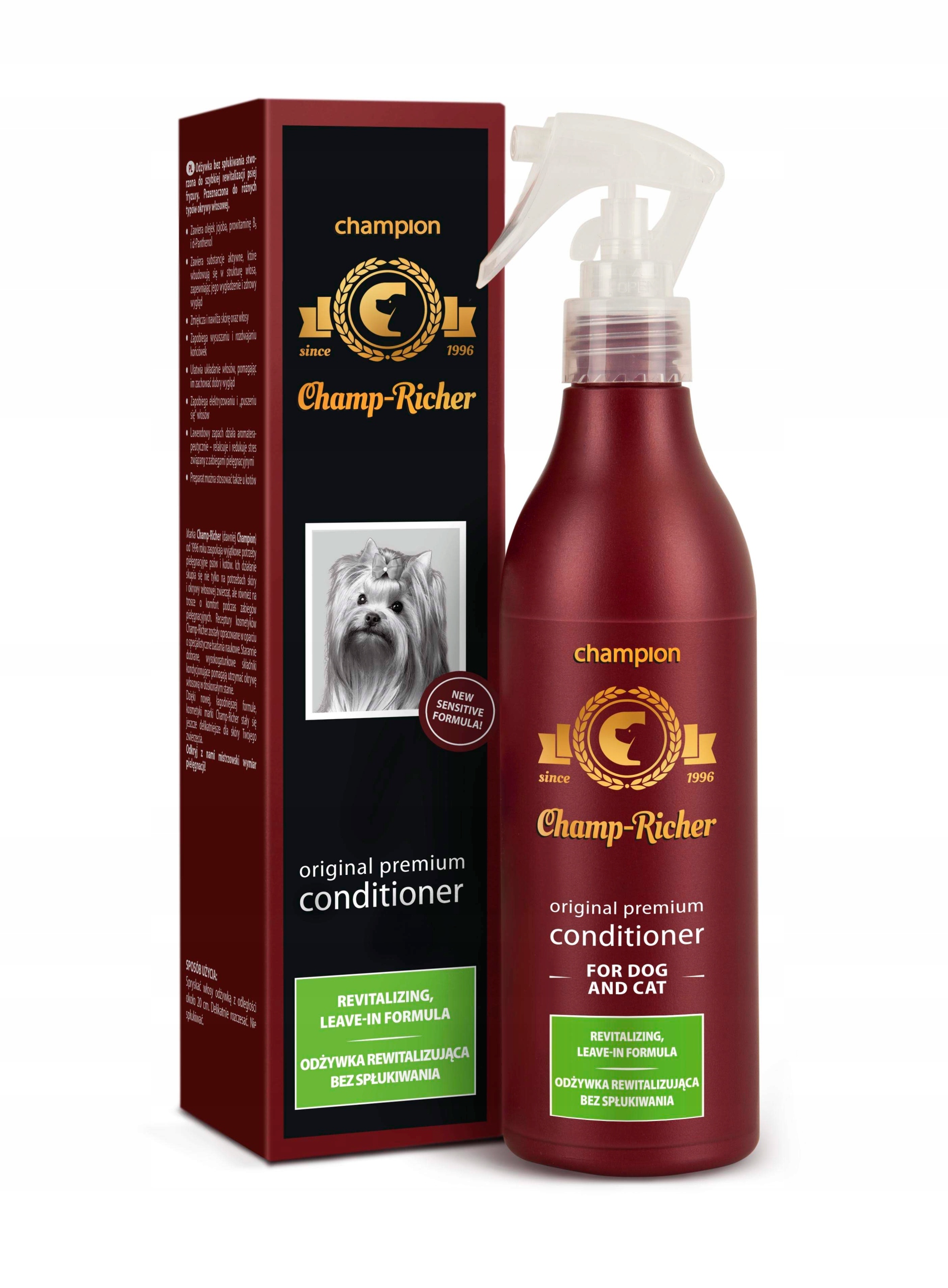 Кондиціонер для відновлення волосся Champ-Richer для собак. Формула спрею допомагає підтримувати шерсть вашої собаки у відмінному стані, надає їй природний блиск і виняткову шовковистість