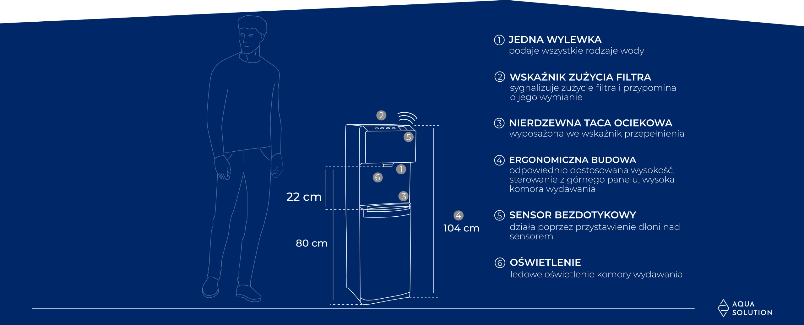 MIDEA JS1844S був створений для безпеки користувачів. Оснащений УФ -лампою усунення мікроорганізмів, знайдених у воді, контрольованих інтуїтивними освітленими кнопками або датчиком близькості буде ідеально знайдено в громадських місцях, як офіси, очікування на госпіталі. Безконтактний розповсюджувач води має один носик, з якого розподіляються три типи води , це практичне рішення збільшує комфорт використання та дозволяє готувати напій при ідеальній температурі! Вільний дистриб'ютор оснащений двома анти -неперевершеними датчиками : механічні та електронні, зручні витягнуті крапельні лоток з механічним сигнальним пристроєм переповнення.