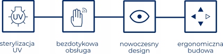 Вільно -створений дистриб'ютор MIDEA підключений до води для водопостачання , на яку слід характеризувати високою якістю та чистотою. Розповсюджувач без срібла оснащений додатковим захистом, що є УФ -лампою , завданням якого є зменшення води мікроорганізмів, бактерій та вірусів та діод, що сигналізує про роботу лампи . Це рішення гарантує безпеку та стабільно високу якість питної води.