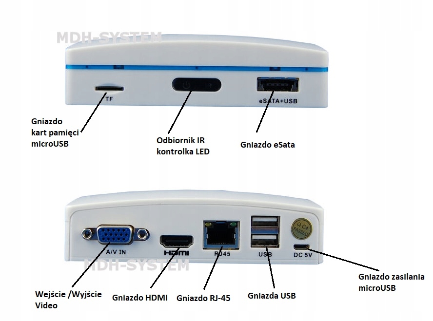 Ми встановлюємо камеру замість існуючого видошукача до дверей. Необхідний діаметр дверей у дверях становить мінімум 17 мм. Використовуючи 5 м кабель, включений (ви можете необов’язково замовити інші довжини), підключіть камеру з міні -диктофоном та джерелом живлення. Ми з'єднуємо міні -рекордер із джерелом живлення та будь -яким монітором або телевізором із входом HDMI або RCA. З'єднання з монітором необхідне лише тоді, коли реєстратор налаштований - пізніше монітор може бути відключений. Завдяки спеціалізованій картці Wi-Fi, диктофон можна підключити до домашньої мережі Wi-Fi. Це дозволяє отримати віддалений вигляд зображення, доступ до записів, завантажувати записи зі смартфона або ПК.