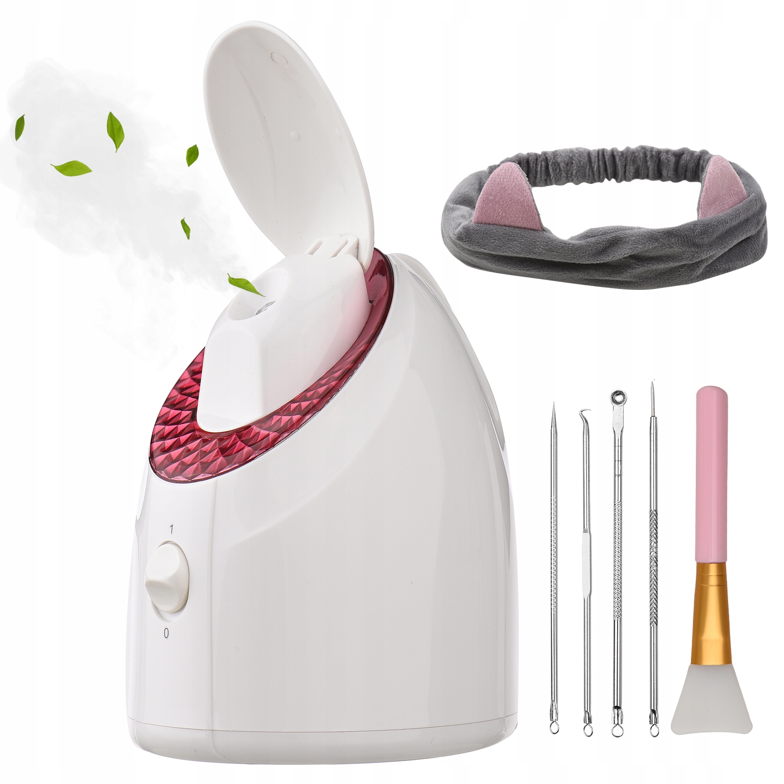 【Бонус-сюрприз для вас】 Він поставляється з гумкою для волосся, щоб запобігти випаданню волосся під час розпарювання обличчя, інструментами з нержавіючої сталі 4 шт., які допомагають видалити забруднення з обличчя, як-от вугри, чорні крапки, білі вугри та прищі, щіточкою для нанесення крему на обличчя після розпарювання.