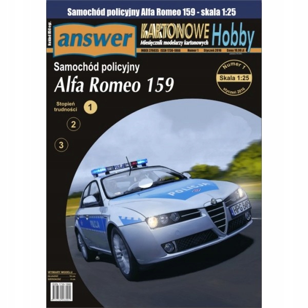 Оплачивая «Ответ 3/16 - Полицейская машина Альфа Ромео 159», вы можете быть уверены, что данное изделие из каталога «Автомобили» будет доставлено из Польши и проверено на целостность. В цене товара, указанной на сайте, учтена доставка из Польши. Внимание!!! Товары для Евросоюза, согласно законодательству стран Евросоюза, могут отличаться упаковкой или наполнением.