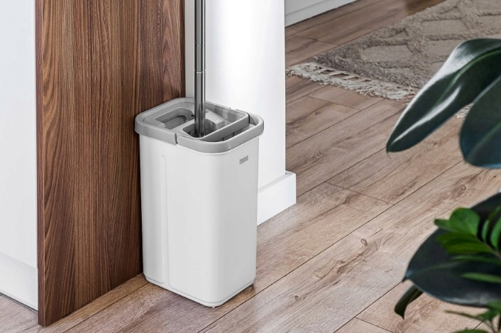 slekee фокусується на практично рішень, саме тому два -камерне відро швабра було побудовано таким чином, що - незважаючи на здатність 5,7 л - воно не займало багато місця при зберіганні.