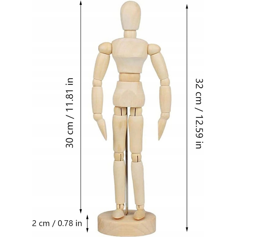 Деревний манекен має рухомі стики, щоб дозволити різні налаштування та репліка положень. Завдяки цьому дуже легко зробити виразні та різні малюнки.
