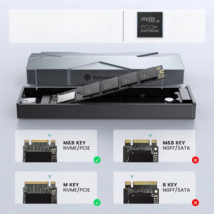 Корпус Yottamaster M.2 NVMe 10 Гбіт/с, USB 3.2 Gen2 Type C NVMe SSD Caddy без інструментів, підтримує UASP і Trim, підходить для 2230/2242/2260/2280 M-Key M&B-Key NVMe PCIe SSD h1>