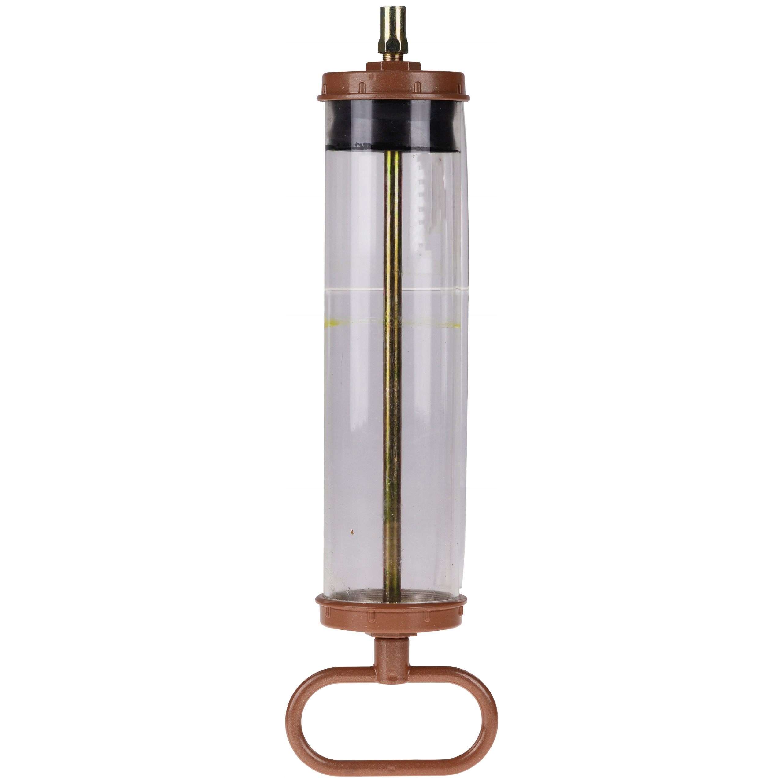Ємність 400 мл: Чудова ємність, що дозволяє аспірувати та впорскувати потрібну кількість олії без необхідності постійного спорожнення і наповніть шприц.Зручна велика ручка:Ергономічна ручка забезпечує зручне та надійне захоплення, що дозволяє точно контролювати процес всмоктування та впорскування масла. Діаметр заглушки 10 мм: Відповідний діаметр роз'єму дозволяє легко витягувати масло з важкодоступних місць.Діаметр корпусу 60 мм: Стабільна конструкція корпусу забезпечує довговічність і надійність інструменту під час роботи.Шланг гнучкий 12 x 230 мм: Гнучкий шланг дозволяє легко адаптуватися до форми та розташування місця, з якого слід відсмоктувати або впорскувати масло.Обладнання: