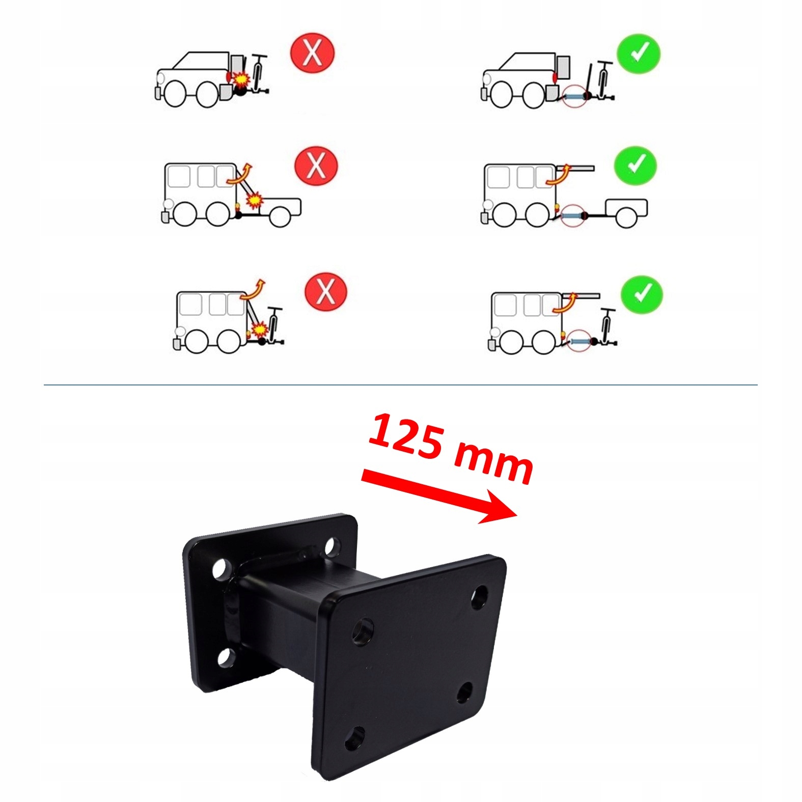 Відстань дозволяє подовжити кулю фаркопа на 125 мм.