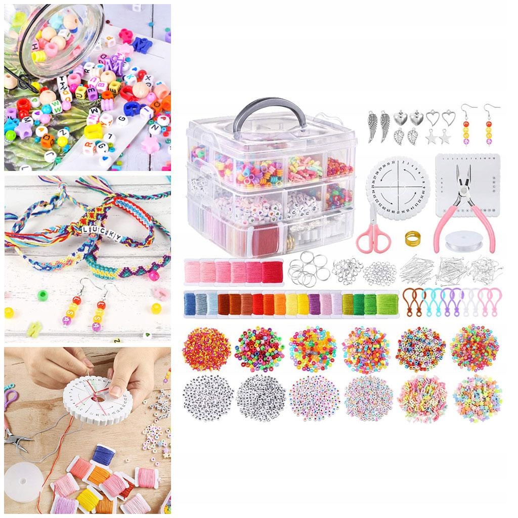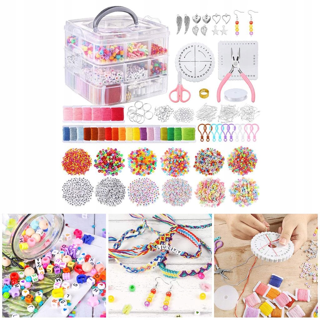 Вміст: - 3500 намистин, 24 штуки вишивки, 10 штук підвіски, 200 штук елементів, 2 штуки плетених дисків, 1 шматок гнучких нейлонових рибальських ліній, 1 пробки, 1 штука, ключові кільця, кільця Ankle та багато прикрас. Купіть кілька улюблених підвісок і повісьте їх на своїх браслетах.