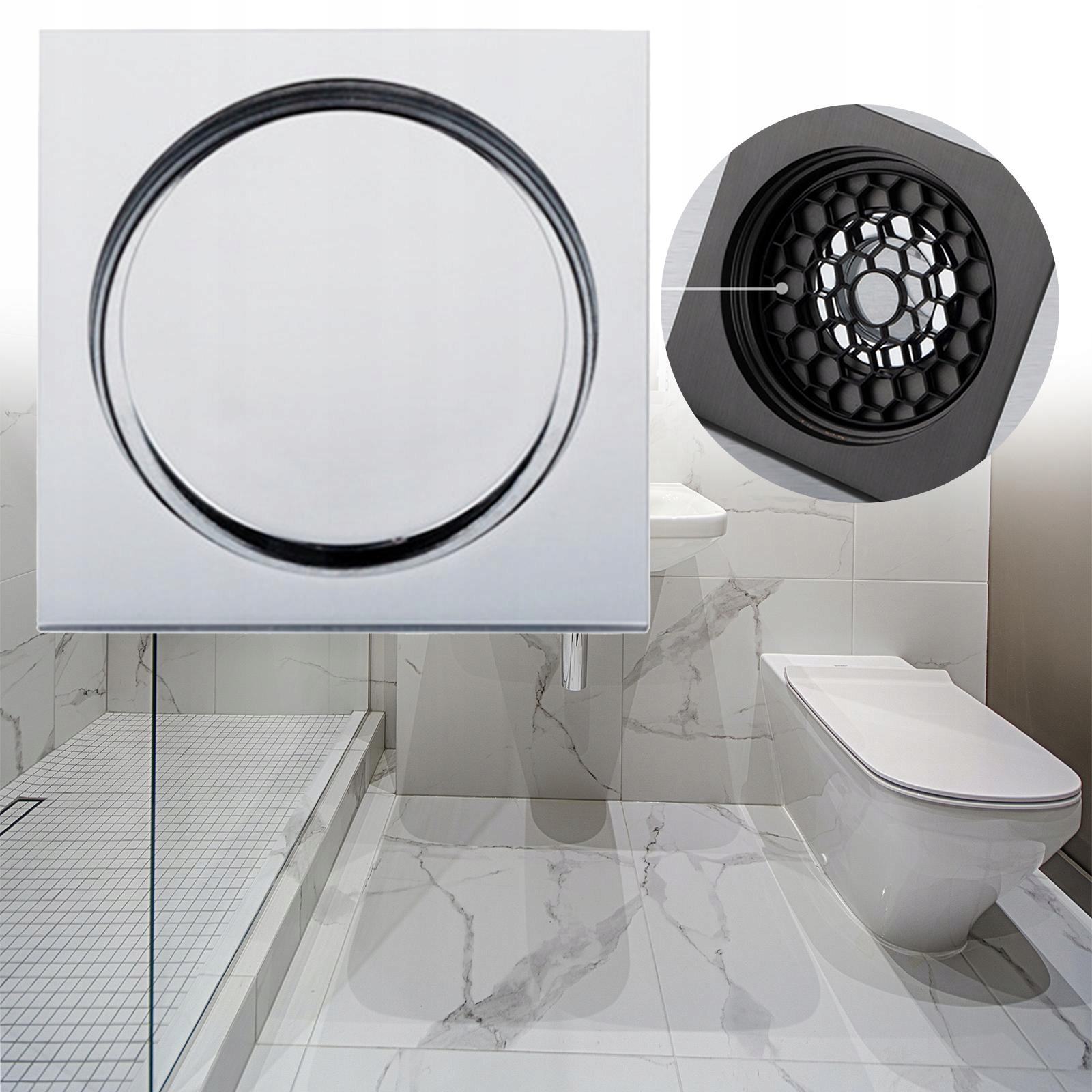 Багатофункціональний квадрат дренажу підлоги, багаторазове використання для душу для ванної кімнати срібло