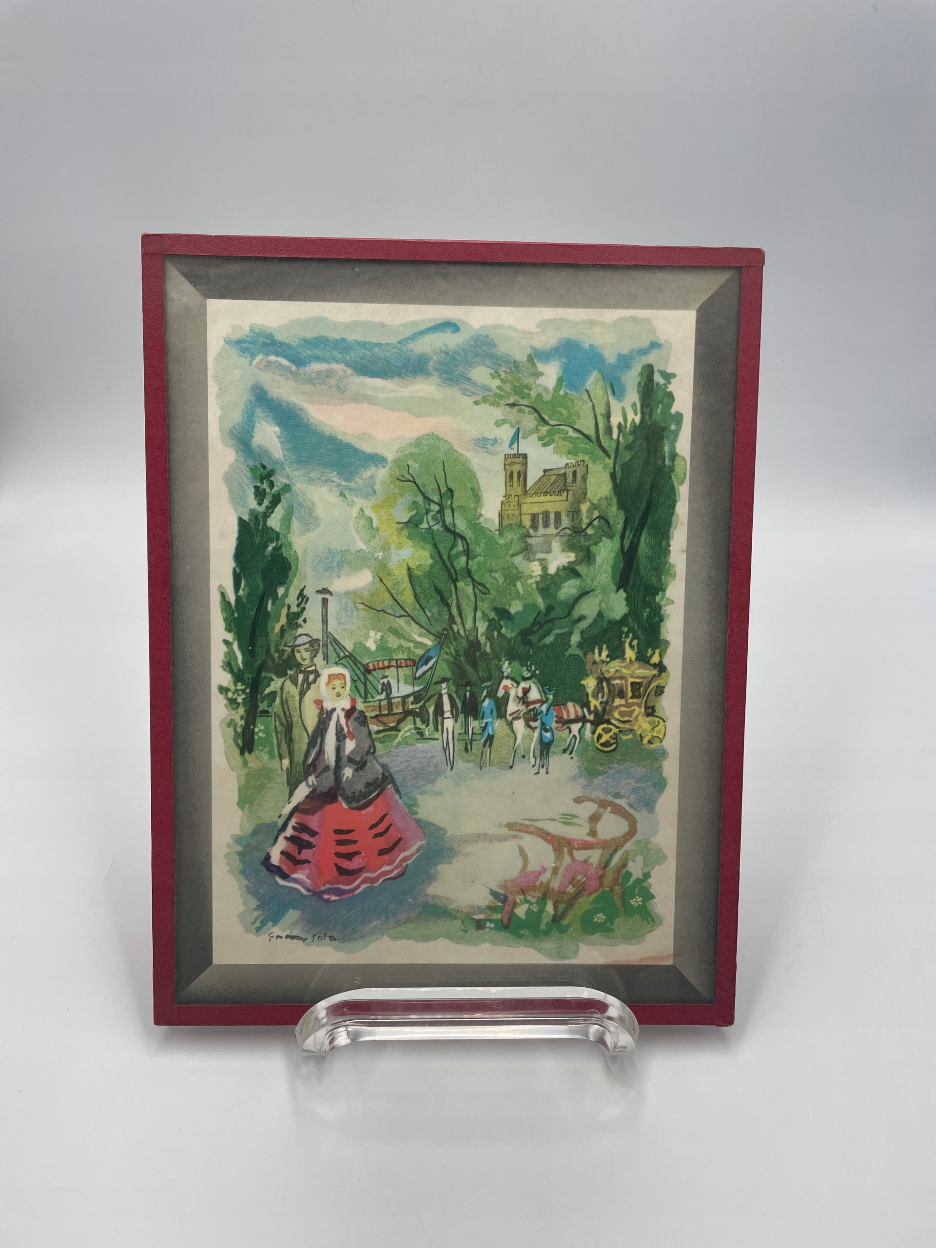 Відтворення барвистого малюнка з загальною сценою на тлі пейзажу, обрамленого декоративною дерев’яною рамою в Бургундії. На зворотному напрямку є позначення Союзу VII. Ілюстрація є високоякісним друком і не є оригінальною роботою автора. Напевно, розподілений як масовий декоративний предмет у другій половині 20 століття.