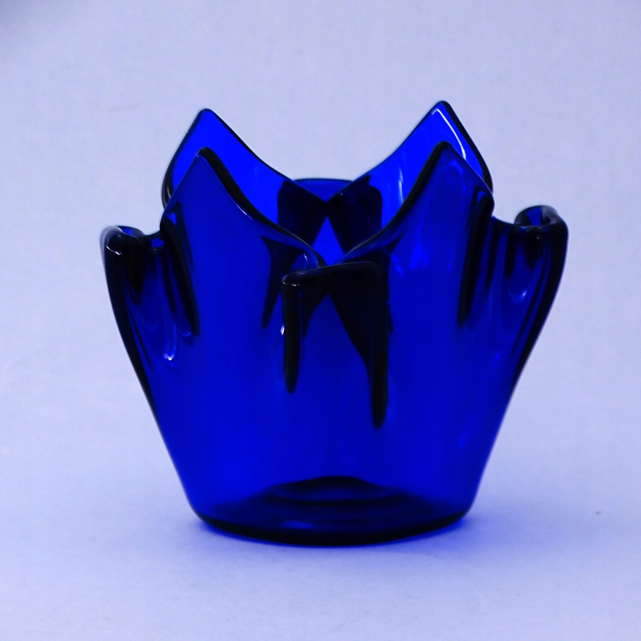 ВИДУВНЕ СКЛО ВАЗА ПІД СВІЧКИ КОБАЛЬТОВЕ СКЛО