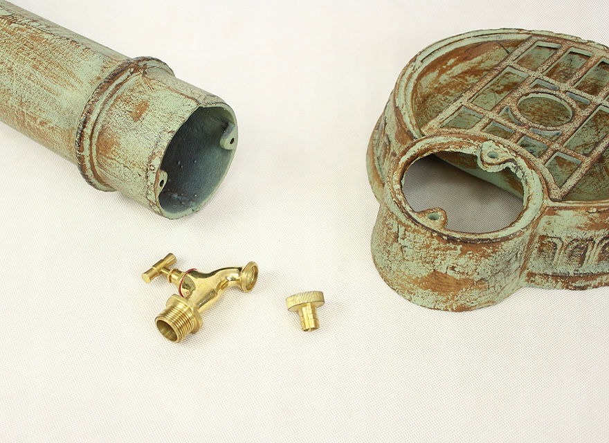У комплекті з раковиною є декоративний латунний змішувач із зовнішньою різьбою 1 дюйм (труба 3/4 дюйма). ) для з'єднання через зазор в стовпі з попередньо зробленим з'єднанням