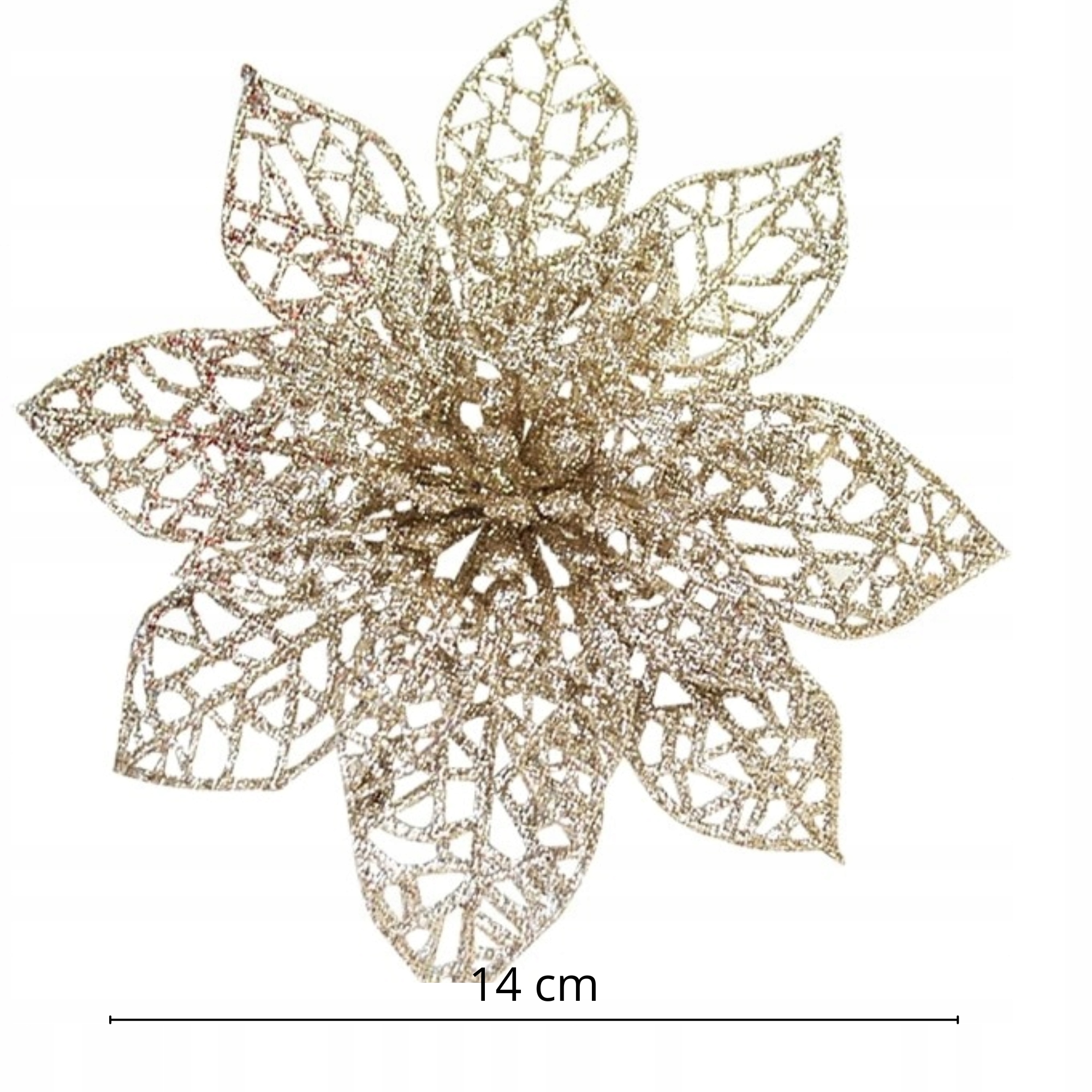 Зірка складається з двох частин, які видно на фото. Він має як більші, так і менші пелюстки. Все зроблено з точністю, завдяки чому прикраси виглядають чудово! Крім того, вони покриті блискітками, які красиво виблискують у світлі ялинкових вогників