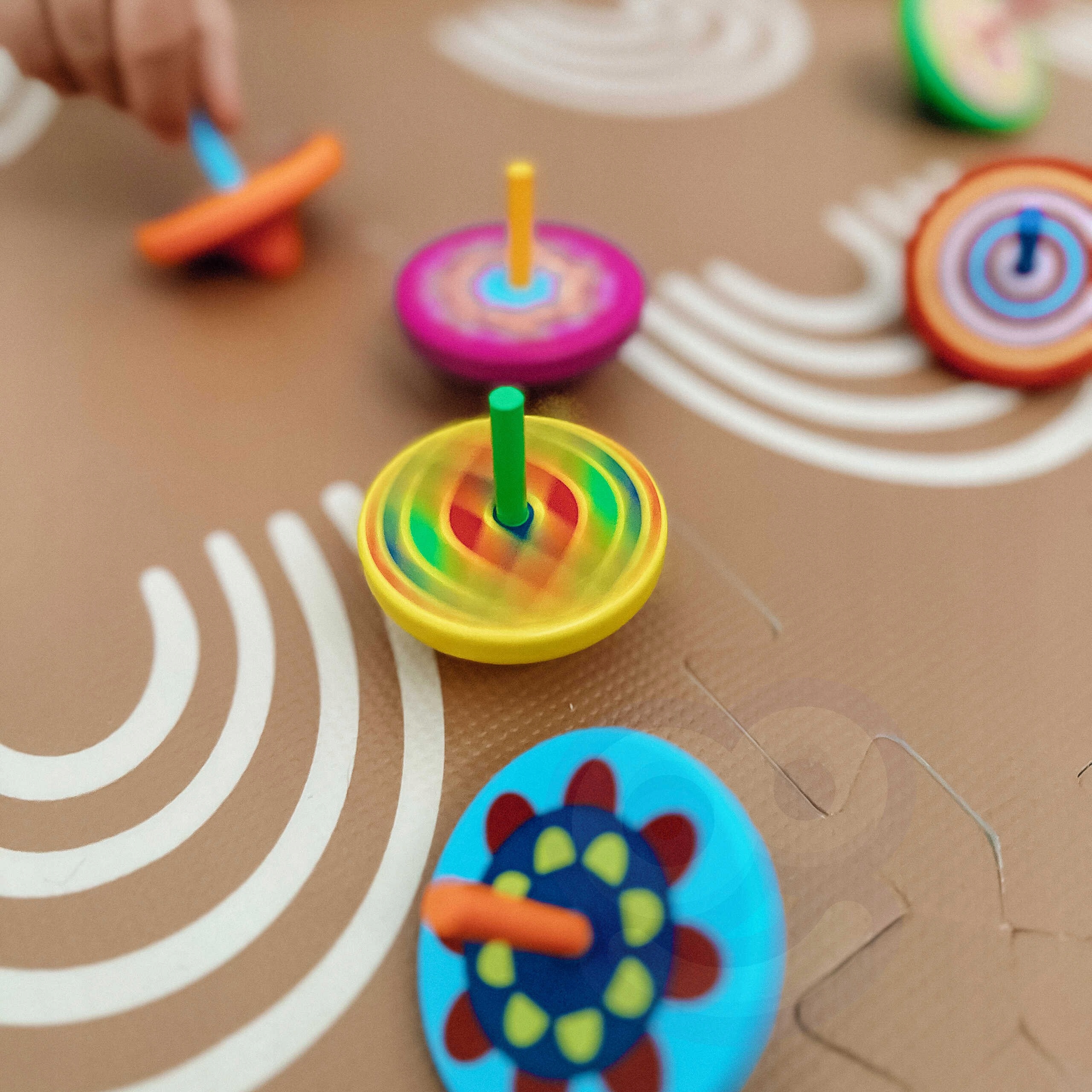 Дзиги різнокольорові дерев'яні порадують вашу дитину під час гри. Дітям сподобаються барвисті візерунки на дзигах, і вони створюватимуть нові візерунки під час обертання.
