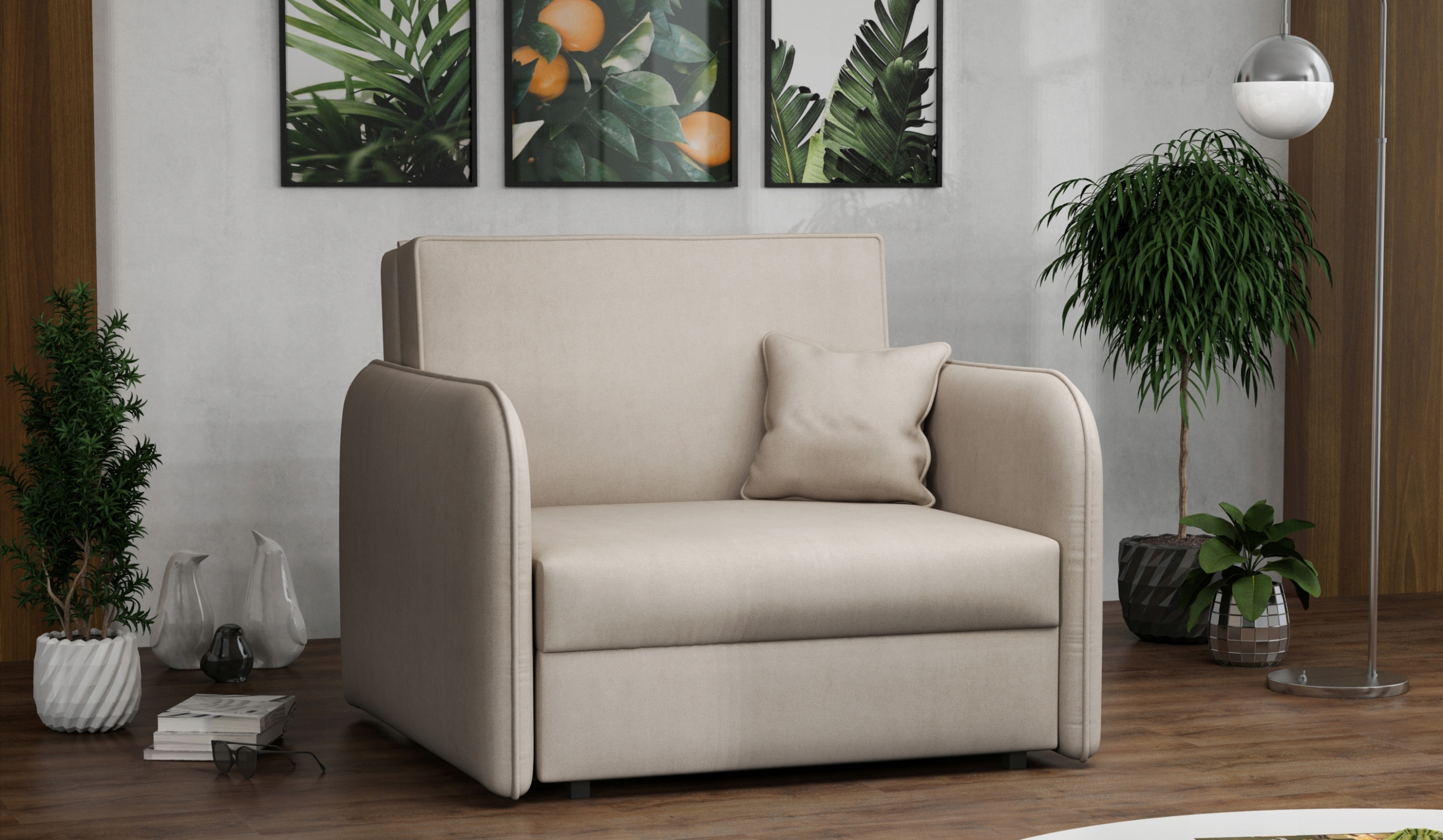 Компактний диван, який завдяки своїй мінімалістичній, але елегантній формі легко впишеться в будь-яку кімнату та дозволить вписати його в будь-який інтер'єр. Незважаючи на невеликі компактні розміри, меблі мають велику корисну площу. Вузькі бортики роблять диван практичним. Контейнер для постільної білизни доповнює меблі ще більшою функціональністю. Одна безкоштовна подушка в тому ж кольорі може бути декоративним елементом і чарівним доповненням.