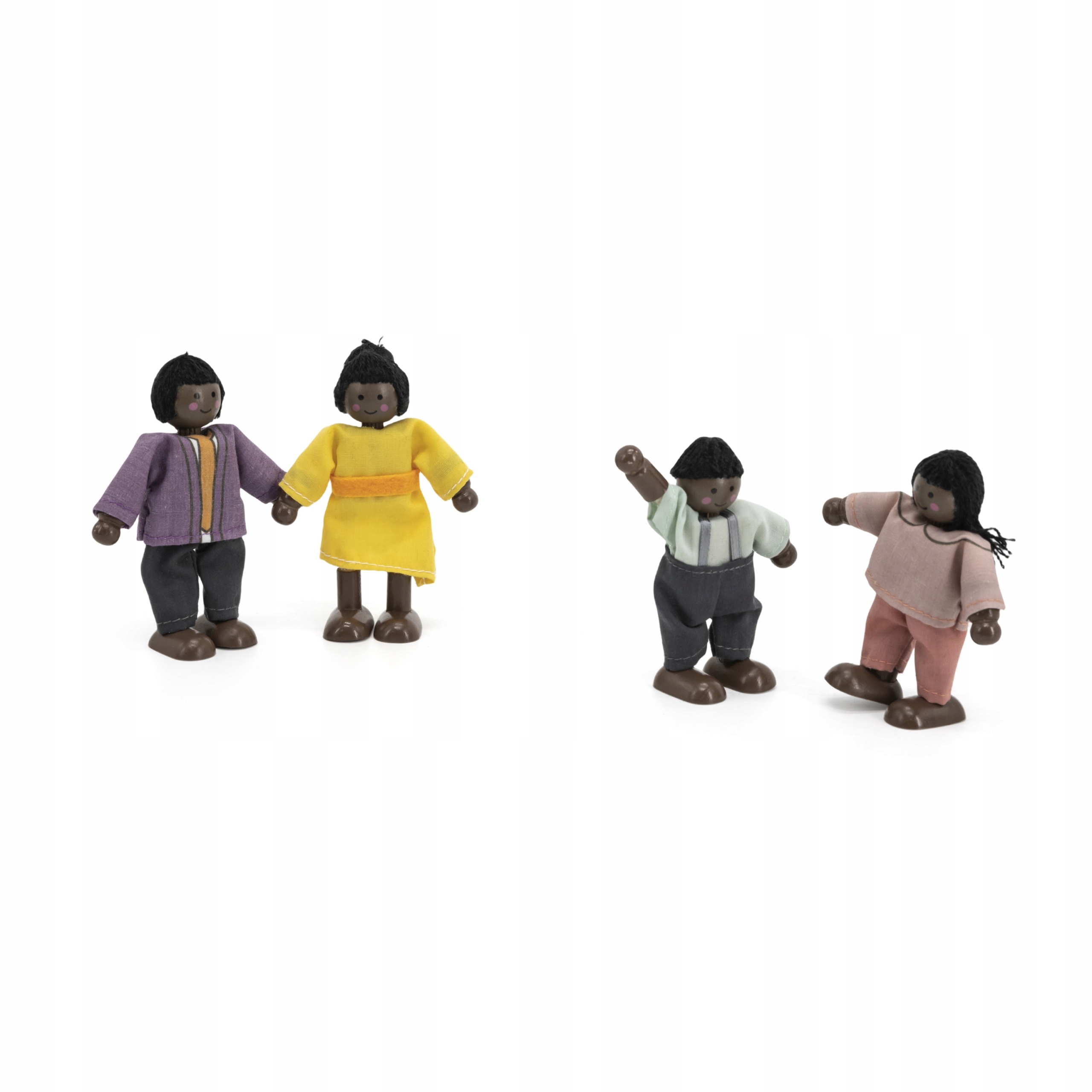 Набір дерев'яних ляльок VIGA, тканинний одяг, 4 предмети, темношкірі