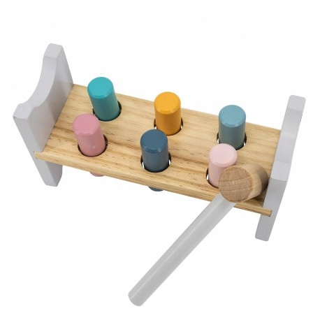 ❎ у наборі з серії Polarb від бренду Viga є дві пастельні, дерев’яні іграшки: навчальна піраміда та пірсемал з молотом.