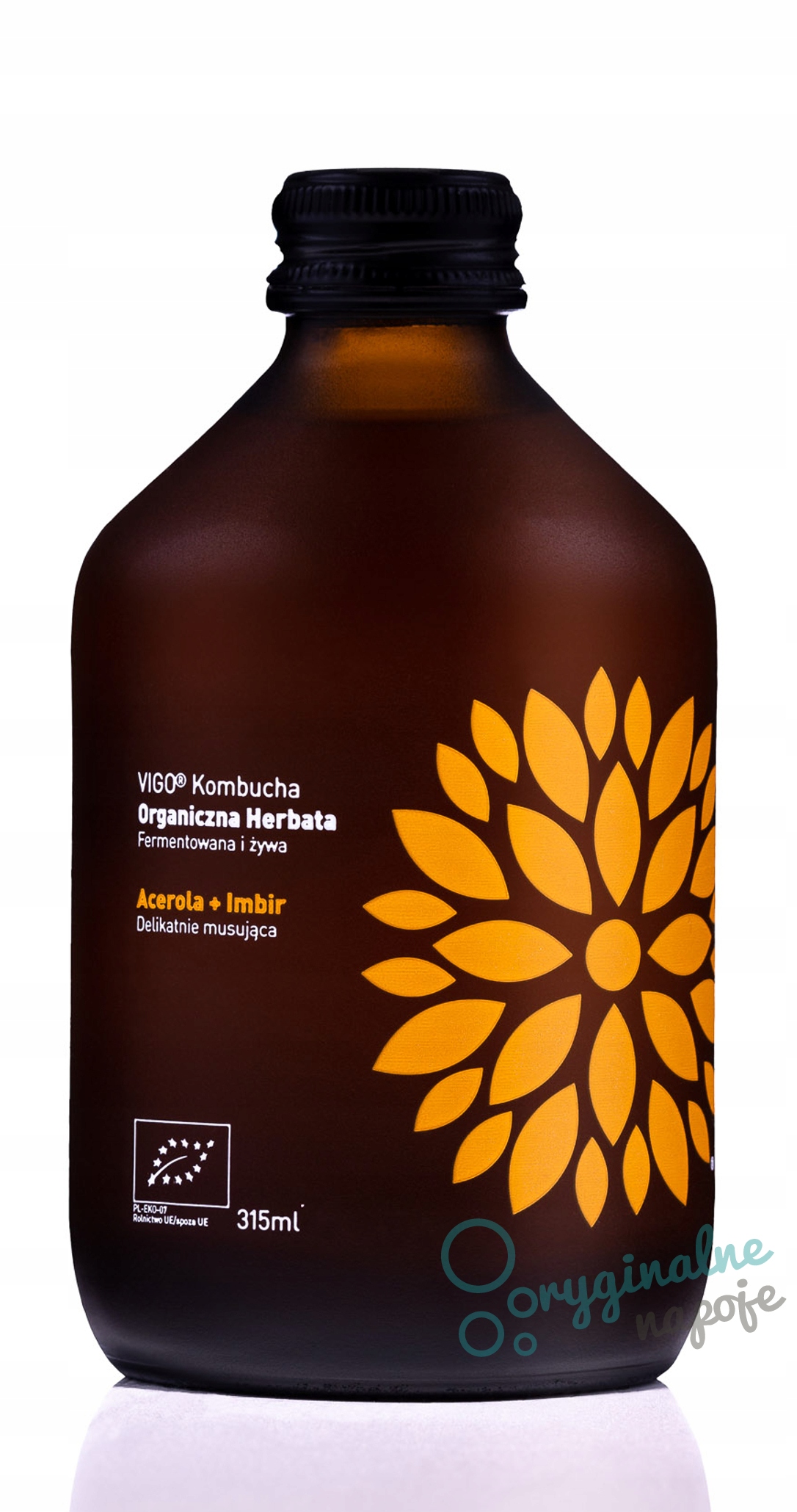 Organic VIGO Acerola+Ginger - ідеальна суміш фруктового пюре ацероли (високий вміст вітаміну С) з тропічних лісів Амазонки на півночі Бразилії та імбиру з Індії, провінція Гуаджархат. Приготована вручну ферментована сира чайна гриба, зварена з суперпродуктами. Наповнений ферментами, електролітами, пробіотиками та живими бактеріальними культурами, які покращують загальне самопочуття. Все в красивому аптечному флаконі. Продукт не вимагає зберігання в холодильнику.