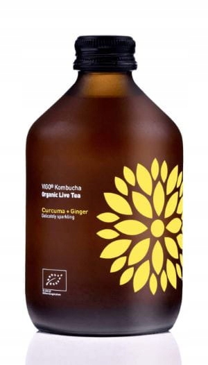 Organic VIGO Turmeric + Ginger поєднує інтенсивність куркуми з перуанської провінції Чанчамайо з ароматним імбиром і перцем, які додатково захистять і детоксикують ваше тіло. Ви знайдете ферменти, електроліти, пробіотики та живі культури чайного гриба, які скрасять ваш день. Ферментований і кустарний, вариться лише невеликими партіями. Все в красивому аптечному флаконі. Продукт не вимагає зберігання в холодильнику.