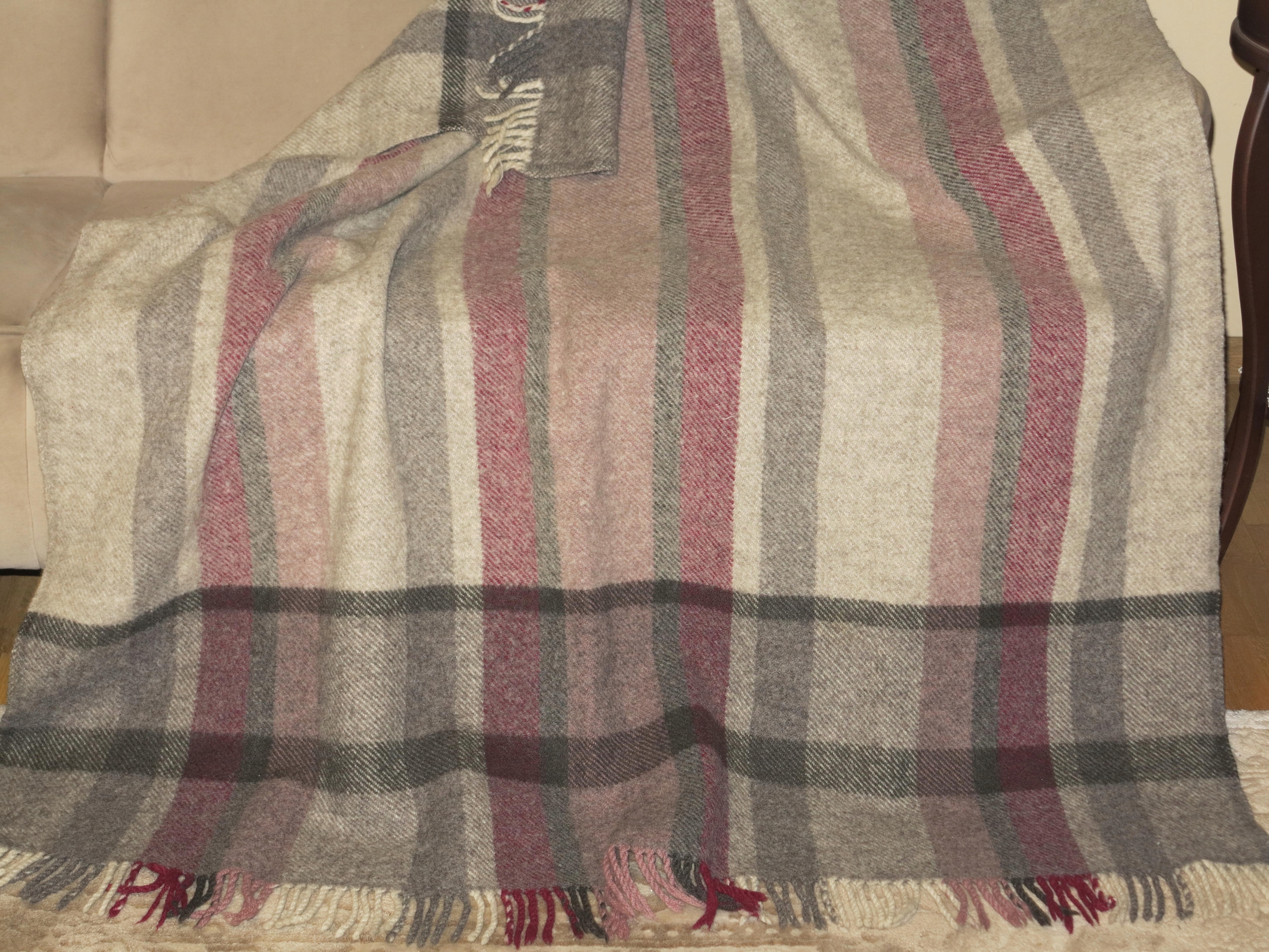 красива, якісна велика норвезька плед-ковдра, виготовлена з чистої вовни. М’який, пухнастий і дуже теплий. Кольори Popiel та Borda