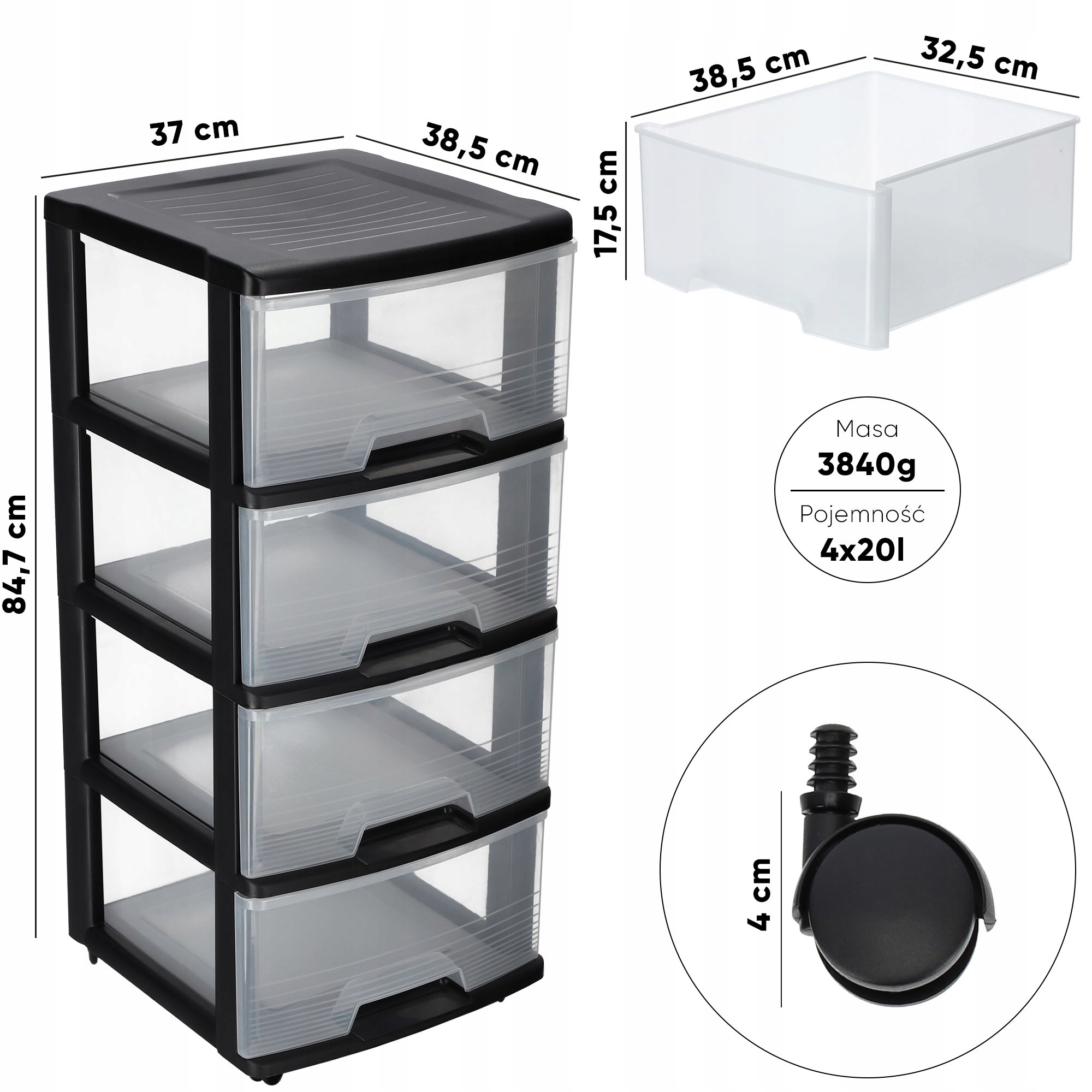 ВИГУРНА ПОЛИЦЯ З КОЛЕСАМИ ШАФА 4 шухляди 20 л