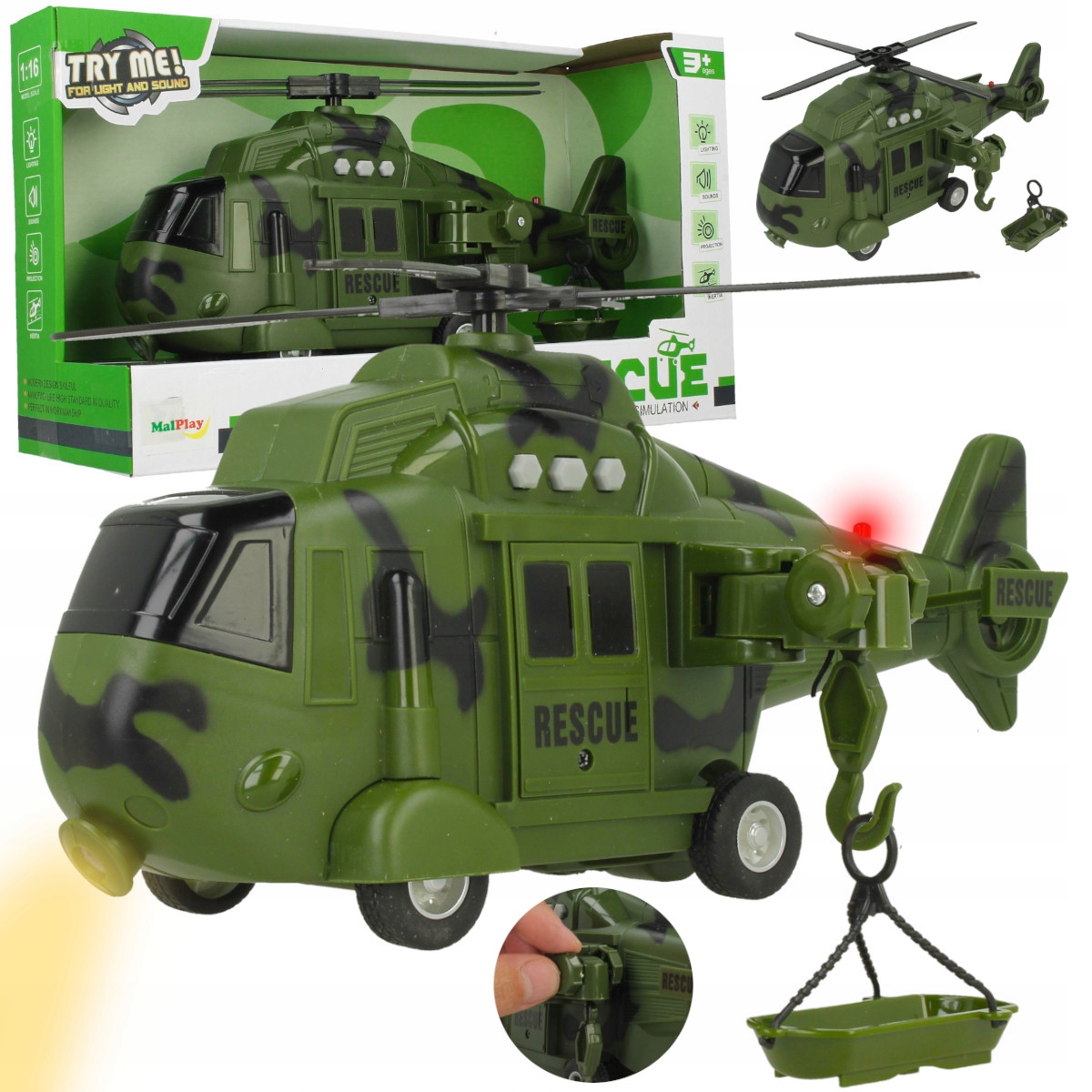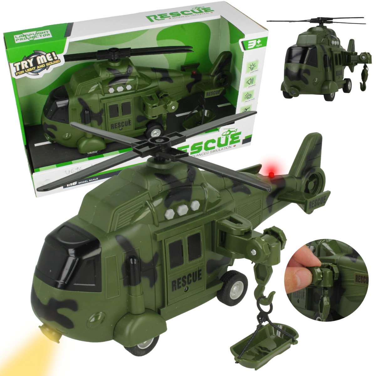 Великий ВІЙСЬКОВО-РЯТУВАЛЬНИЙ ГЕЛІКОПТЕР зі звуком та світлом, додатково оснащений лебідкою та носилками