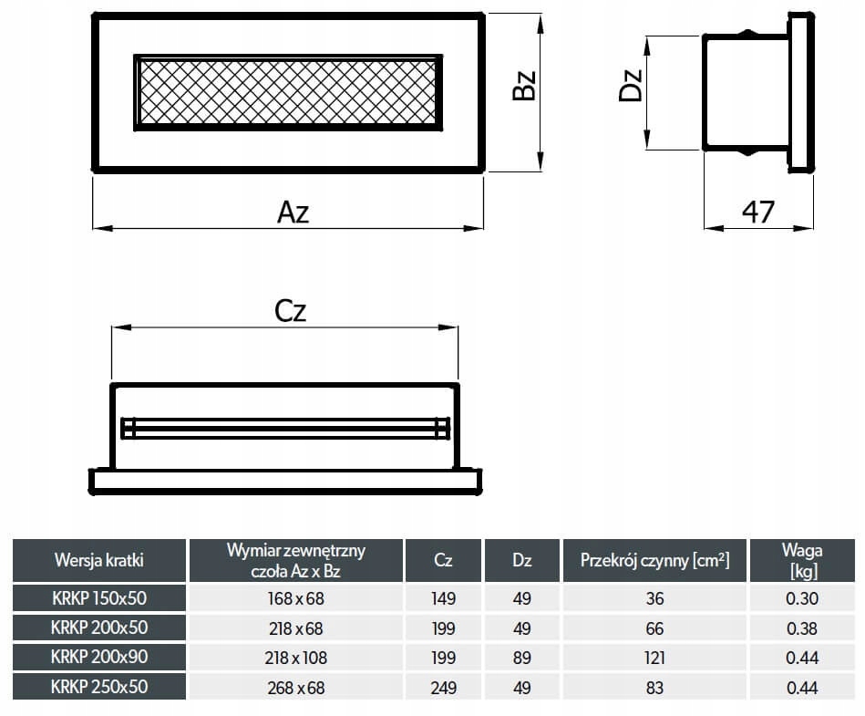 - Зовнішні розміри решітки (Az × Bz): 218 × 68 мм