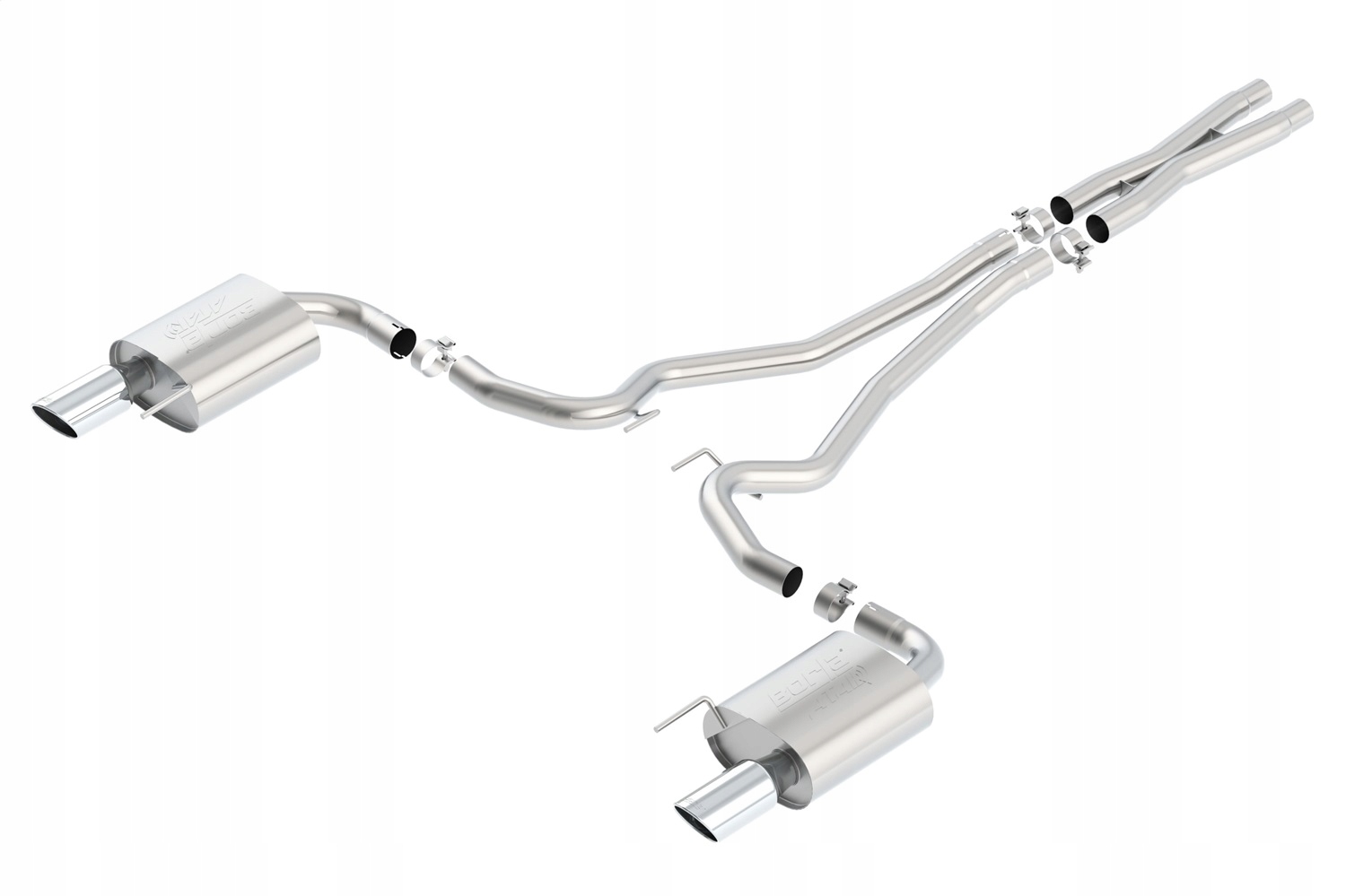 Надайте своєму Mustang більш агресивний звук і більше потужності за допомогою комплекту вихлопу Borla Cat-Back. Вихлопний комплект Cat-Back покращує потік вихлопних газів і зменшує протитиск у системі – комплект включає середні труби, х-подібні труби та два кінцеві глушники високого потоку.