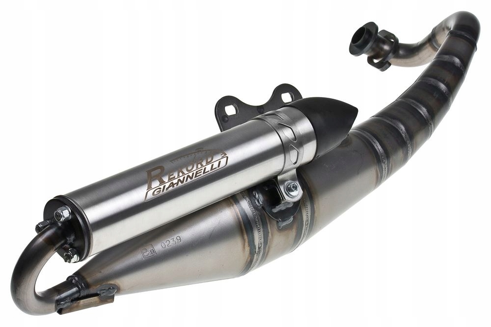 Вихлоп від італійського виробника Giannelli - модель Rekord. Покращена продуктивність і характеристики. Giannelli Rekord, безперечно, є найпривабливішим спортивним вихлопом як для оригінальних циліндрів об’ємом 50 куб.см, так і для циліндрів Sport/Midrace 50-70 куб.см. Італійський виробник додає до його продуктивності точну якість виготовлення та привабливий алюмінієвий наконечник. Хороший вихлоп за дуже привабливою ціною. У комплект входить: повне кріплення, гвинти та прокладки.