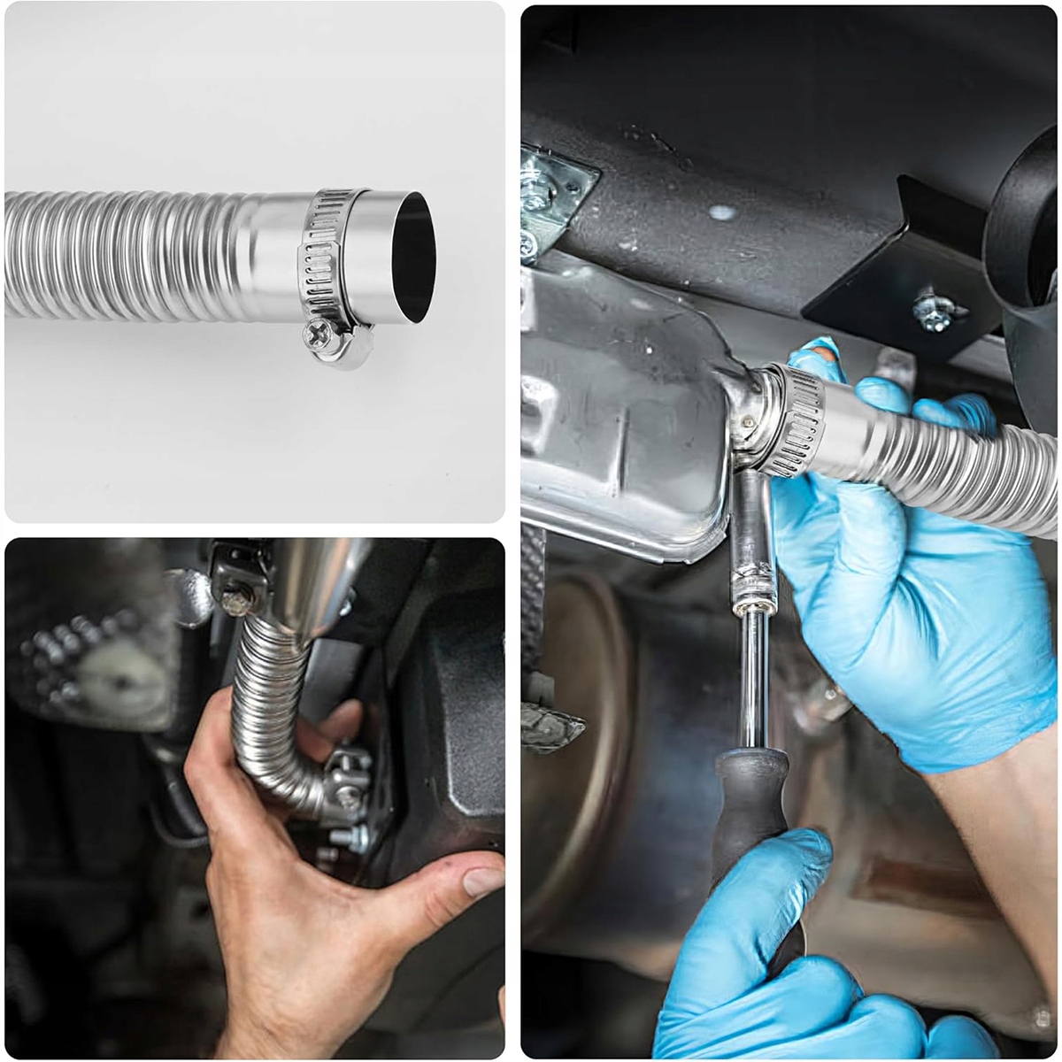 【Легка установка】 Підключіть вихлопну трубу з нержавіючої сталі нового автомобіля і прикріпіть обидва кінці вихлопної труби з затискачами.
