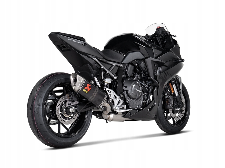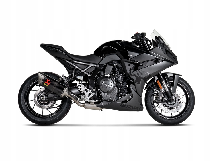Це абсолютно нова вихлопна система, розроблена з нуля та створена з легких матеріалів, перевірених на перегонах. Зовнішня втулка глушника з вуглецевого волокна, теплозахисний екран і затиск, титановий наконечник, колектор з нержавіючої сталі, резонатор і сполучна труба, а також чорний алюмінієвий кронштейн глушника забезпечують зниження ваги на 39,6% (3,2 кг) порівняно зі стандартною вихлопною системою. Альтернативний маршрут вихлопу розміщує його з правого боку машини (стандартна версія розташована під мотоциклом) для більш гострого стилю, тоді як теплозахисний екран із вуглецевого волокна забезпечує захист від тепла та привабливий завершальний штрих. Він забезпечує збільшення потужності та крутного моменту на 4,7 кВт (6,4 к. с.) при 9200 об/хв і 4,7 Нм при 7650 об/хв відповідно під час тестування на динамометрі Akrapovič і порівняно з Suzuki GSX-8S, обладнаним стандартною системою.