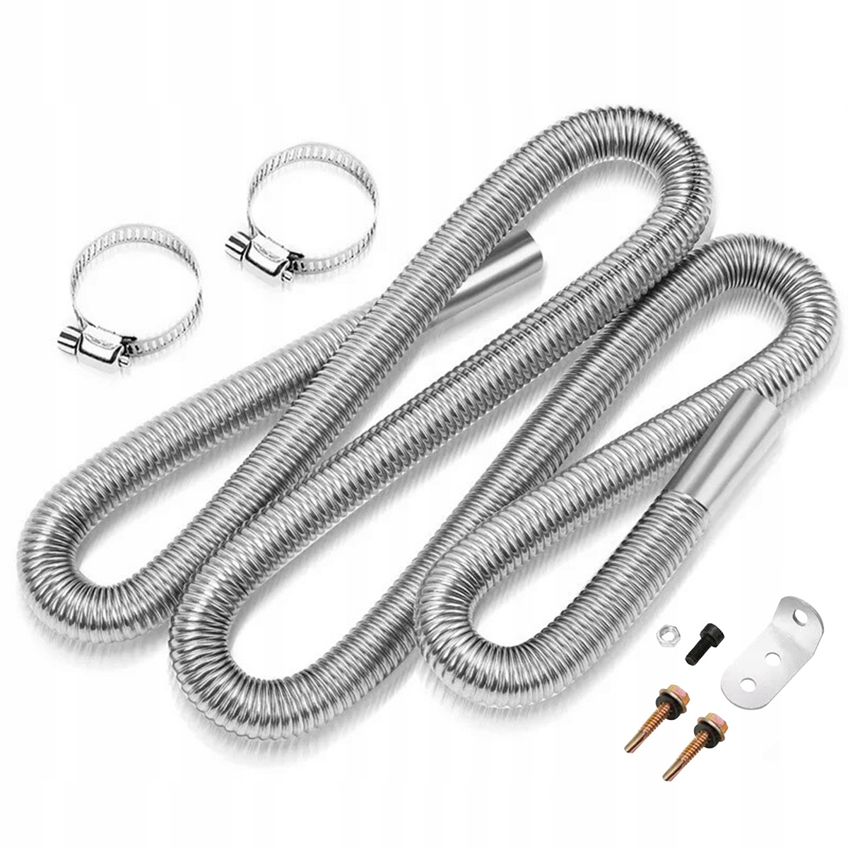 🚙【Комплект поставки】 Ви отримаєте 1 витяжний шланг з нержавіючої сталі для паркувального обігрівача 200 см + 2 хомути з нержавіючої сталі + 1 витяжний кронштейн + 3 гвинти.