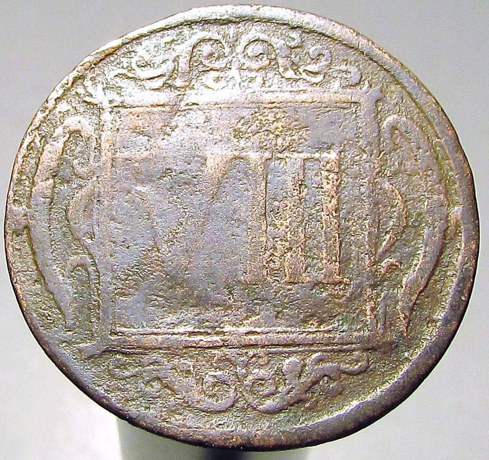 - Аверс: Голова бика в щит і в колі Напис: 1713 STADT COSVELDT